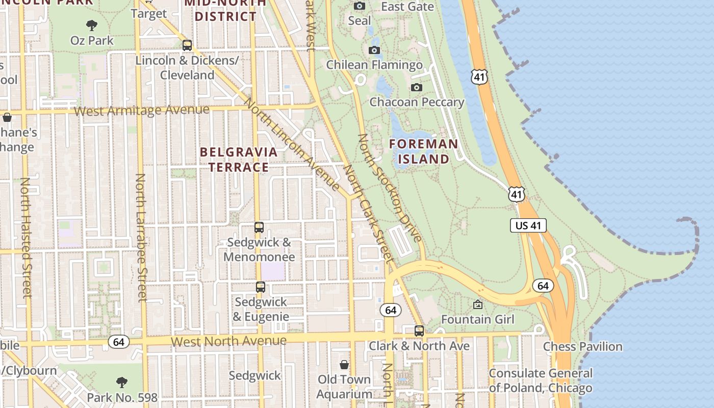 The hotel stands in the center of Chicago, just moments from Chicago History Museum. Also, guests can stay 0.2 miles from South Pond Nature Walk and near a lake. The accommodation is also right around the corner from Ulysses S. Grant Monument. There is Stockton & Lincoln bus stop around 10 minutes' stroll from Hotel Lincoln.